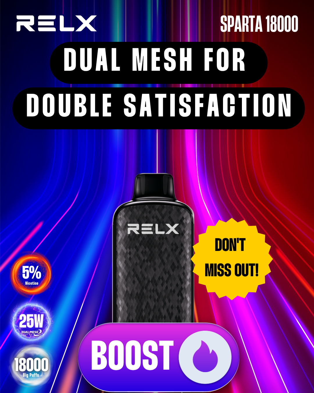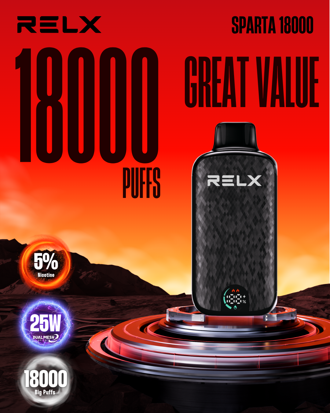 • Extended Vaping: Up to 18,000 puffs with consistent performance
